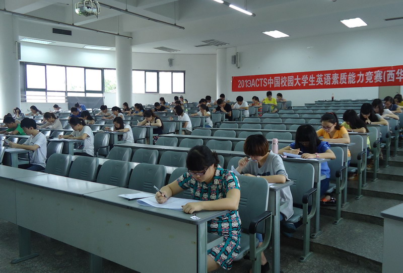 6月16日上午10:30,2013年(春季)ACTS全国大学生英语素质能力竞赛成都赛区复赛在我校5C-204教室顺利进行。来自我校和四川外语学院成都学院、电子科技大学等共计74名同学参加了此次复赛。