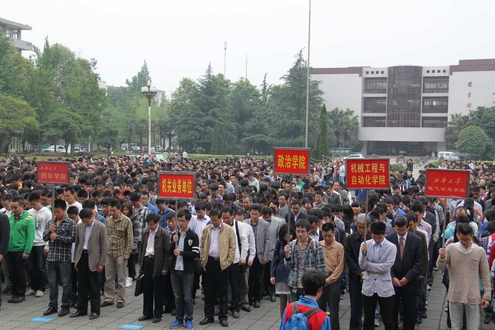 师生代表向在雅安地震中的遇难同胞集体默哀