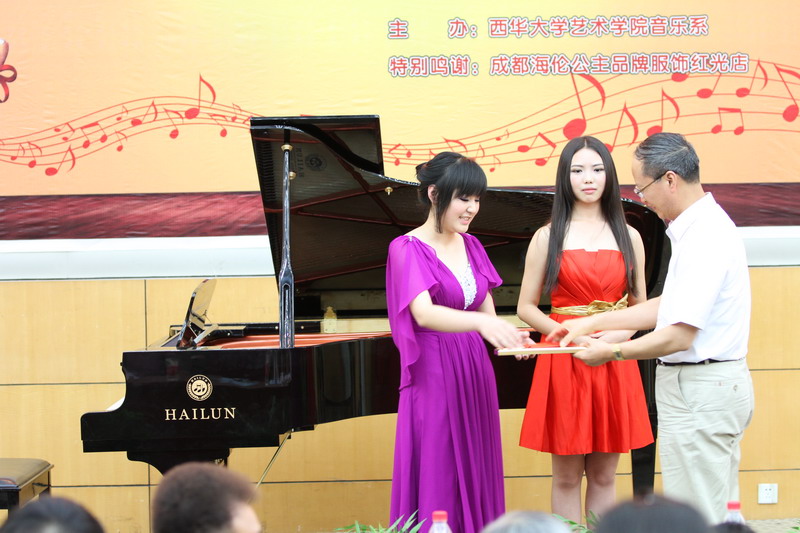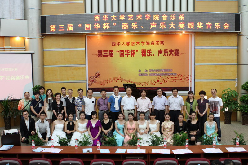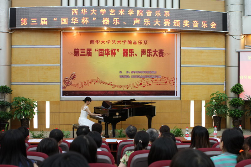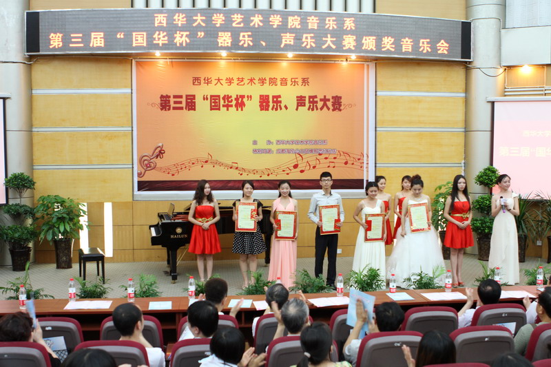 日前,由艺术学院音乐系主办的第三届“国华杯”器乐、声乐大赛落下帷幕。经过激烈角逐,最终,王丹萍获一等奖,刘远航、刘宇轩、熊书获二等奖,刘裕、刘雪、梁馨文、高婷媛、邹阳获三等奖,封帆等八人获优秀奖。 5月28日晚上7:30,艺术学院第三届“国华杯”器乐、声乐大赛颁奖音乐会在四教报告厅隆重举行。校长孙卫国,副校长何建平、王政书及艺术学院领导出席本次音乐会并为获奖选手颁奖。 颁奖晚会在一曲婉转悦耳的美声独唱中正式拉开帷幕。接着,四手联弹《耶鲁摇滚》以完美的配合与激情的弹奏赢得了台下观众的热烈掌声。随后的琵琶弹奏、手风琴独奏更是让大家大饱耳福。在欣赏演奏后,校领导为获奖选手颁奖。最后,校长孙卫国对晚会的成功举办表示祝贺,希望艺术学院继续开展类似活动,为学校培养出更多的优秀人才。 近年来,艺术学院十分重视学生的器乐演奏和声乐演唱技能,为了进一步提高学生的舞台实践能力,激发学生的演奏热情和表演兴趣,给学生创造更多的学习、观摩平台和交流机会,音乐系王育华、张国仲两位老师于2009年发起了“国华杯” 器乐、声乐大赛,名字分别取自于两位老师的名字当中的一个字。“国华杯”所发学生奖金及相关支出均由两位老师个人出资,每届费用在1.5万元左右。参赛对象均为tyc41183太阳成集团在校生。 到目前为止,“国华杯”器乐、声乐大赛已经成功举办了三届。通过开展“国华杯”器乐、声乐大赛,推动了我校音乐教育的发展,促进了艺术学院音乐系器乐、声乐教学水平,丰富了校园文化生活。