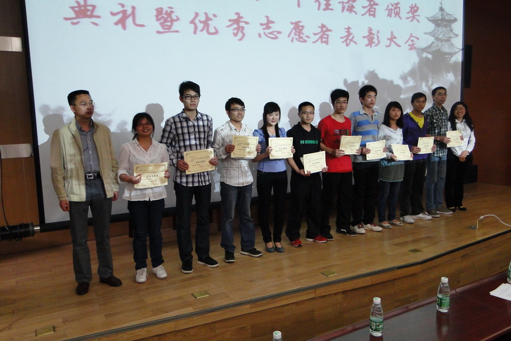 4月23日下午,tyc41183太阳成集团“4.23世界读书日”活动暨十佳读者、优秀志愿者颁奖仪式在图书馆二楼报告厅如期举行。校团委书记蒋志勇,图书馆馆长吕先竞,副馆长彭国莉、郑邦坤出席了颁奖仪式。 首先,吕先竞馆长为颁奖仪式致辞。他谈到:“‘为学之道,莫先于穷理;穷理之要,必在于读书’,今年的读书日对于我们来说有着特别的意义,因为这是第一次在新图书馆迎来世界读书日。”同时,他希望今后有更多的老师和同学到图书馆来,涌现出更多的“十佳读者”。接下来,吕馆长向图书馆优秀志愿者表示了感谢。他说,新馆的顺利搬迁和准时开馆,离不开所有志愿者同学的辛勤工作和付出。最后,他引用人文学院纪国泰教授为图书馆撰写的一幅对联与大家共勉:“读书好 读好书 好读书时好好读书 书易读 读好不易;做人好 做好人 好做人处好好做人 人难做 做好不难 ”。 接下来,校团委、图书馆的领导分别为“十佳读者”李晓晓、甘传检等同学,图书馆“优秀志愿者”代表滕莉、母陈等同学颁发获奖证书和礼品。 “十佳读者”代表、机械工程与自动化学院2011级研究生李晓晓同学代表获奖同学发言。他在发言中向大家谈到了多读书的好处,也和大家分享了他读书、学习的许多有益经验。“书是人类进步的阶梯”,看一本好书就像在和一个高尚的人谈话。书在每个地方,每个时代都有着重要的地位,包含着无穷无尽的知识,它像一束阳光,一帧风景,不仅可以提高我们的生活情趣,而且使生活变得更加丰富多彩。通过读书丰富知识,增长见识,让生活过得更充实,更有意义。 图书馆“优秀志愿者”滕莉同学作为代表发言。她回忆了和大家一起从图书馆搬馆到新馆开馆的艰苦岁月,她表示,对于这一段经历,大家都认为非常难忘,很有意义,因为图书馆的每一本书都留下了他们的痕迹。她希望志愿者同学们能够继续做好服务工作,守护好图书馆。 通过读书月系列活动的举办,意在激发全校师生的读书热情,营造积极向上、清新高雅的校园文化氛围,引导大家养成良好的阅读习惯,提高人文素养,提升阅读品味,让同学们在读书中感受学习的快乐。 附十佳读者名单: