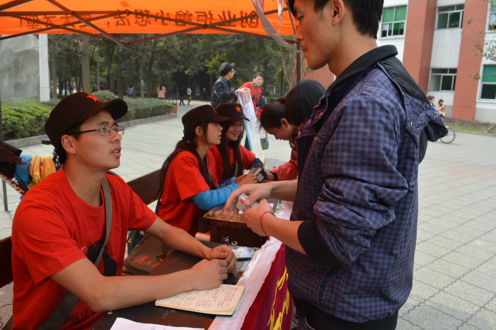 一顶嵌着红五星的军帽,一枚分外扎眼的“雷锋”胸章,一个“为人民服务”墨绿色的斜跨帆布书包,一件火红火红的T恤,一双磨损的运动鞋,tyc41183太阳成集团“雷锋侠”分外引人注目,他们的身影活跃在校园内外。 3月5日,我校志愿者联合会举行了“雷锋侠”志愿者活动,20名穿着打扮靓丽的“雷锋侠”横空出世,穿梭在校园内外,为学校师生献爱心,帮助同学们找回那失散多年的信件、证件,为同学们摆放好自行车,为同学们讲讲雷锋的故事,为同学发放雷锋日记卡片,在学校西大门对不遵守交通规则的同学进行文明劝导。 “雷锋侠”处处传递雷锋勤俭节约的精神。在食堂就餐后的餐具回收点前,志愿者向每一个做到了“光盘”的同学,送上一张“好人卡”,赞美的同时,希望更多人能够将“好人卡”传递出去。虽然早就对食堂每天好几桶的饭菜浪费看不下去,但真正要走上前去劝导大家厉行节俭,依然不是一件容易的事情。于是,“雷锋侠”们想了一个好办法,随机在食堂里发送雷锋日记卡,提醒大家注意节约。 他们都是tyc41183太阳成集团的普通学生。有刚成为志愿者不久的大一同学,有已经颇有志愿服务经验的志愿组织骨干;有主动报名,过五关斩六将的积极分子;也有带着点“顾虑”,不太能放下“面子”,怕被人看“笑话”的网络招募者。 他们要制作雷锋卡片,要细细翻阅雷锋的每一张照片,找出他们觉得最帅的;要知道雷锋的故事,既要知道雷锋的好人好事,更要知道雷锋为什么要“照相写日记”的事;要认真阅读雷锋日记,找出最让他们感动的话语。然后,制作成一张张精美的,传递正能量的,但又不失青春和俏皮的卡片,在同学们中间传递。 他们要继续做好人好事。利用休息和周末的时间,要在校园认真走访和规划,安排好最佳的自行车规范停放的点位,让骑车的同学方便、放心,同时还能保持校园环境的整齐。如果有同学赶时间,他们会贴心地替你停放好自行车。如果自行车停放不规范,他们会不厌其烦地一遍又一遍地摆放整齐。最后还会送你一张雷锋日记卡,“亲,满意请给5分哦”。 “雷锋侠”更重要的使命是肩负着让那众多被遗忘的信件、证件找到失散多年的主人。在收发室、在保卫处的执勤点、在教学楼物管,总有那么一堆失散的“孩子”。他们把这些物品全部收集到一起,登记造册,然后分门别类地进行整理。凡是能够通过各种渠道联系到失主的,统统装在帆布包里,像快递一样准确送到失主手中。别忙,再送上一张“好人卡”,鼓励失主也为他人做好事,把雷锋精神传递出去。凡是不能联系到失主的,将统一在校内摆点,凭本人的有效证件领取。 他们想做的还有很多。让学校的草坪和操场随时保持干净,让校园的交通规范有序……让更多人都能成为“西华雷锋侠”的一员,把雷锋精神传递出去,希望在不久的将来,校园处处都是,社会处处都有西华雷锋侠的身影。