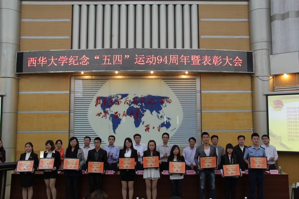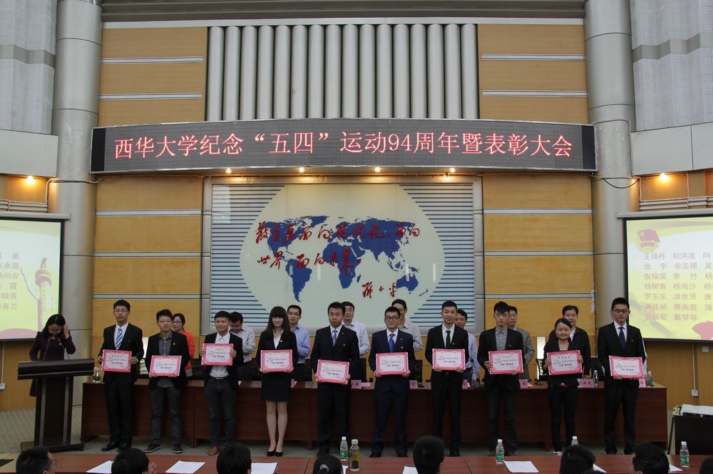 5月2日下午四点,在近350名团员青年嘹亮的国歌声中,我校纪念“五四”运动94周年暨表彰大会在四教报告厅隆重举行。校党委副书记王小林出席大会并讲话。 王小林副书记对一年来我校共青团的工作给予了高度肯定,他说,长期以来,在学校党委的正确领导下,学校共青团始终高扬中国特色的社会主义伟大旗帜,大力践行诚朴勤仁的优良传统,用智慧和汗水为学校建设发展贡献出了积极的力量。在过去的一年里,学校团委和各级团组织深入学习党的十八大报告和习近平总书记关于“我的中国梦”的重要阐述精神,紧紧围绕学校中心工作,以思想引领和成才服务为核心内容,以青年思想引导、学生创新创业、校园文化建设、学生社会实践、青年志愿服务等团学活动为主要抓手,积极创新工作形式和内容,在组织青年、引导青年、服务青年、维护青年合法权益方面做了大量工作,取得了很好的成绩,得到了全校师生的肯定和好评。 学校希望青年学生高举社会主义旗帜,自觉树立远大理想,坚定自己的信念;希望广大青年学会学习,努力学习,终身学习;希望全校青年继续高扬五四精神,激发青年的历史责任感,发挥青年人的创造力、生命力、朝气与活力,在报效祖国、奉献社会、服务人民的征程中创造更加辉煌的业绩。 校团委主持工作副书记王唯洁追溯了中国共青团光辉历程,认真总结了过去一年来学校共青团围绕“如何在党的领导下,带领全校团员青年坚定走有特色的社会主义道路和如何在青年学生的成长成才中做好服务”两项重要任务所开展的各方面工作。 大会还对过去一年中在共青团工作中成绩优异、表现突出的艺术学院团委等8个“五四”红旗团委,2010级思想政治教育一支部等30个“五四”红旗团支部,王扬丹等26名“五四”青年标兵,任小玉等387个优秀共青团干部,范诗然等762个优秀共青团员进行表彰。学校党委组织部部长唐润华宣读了表彰文件。 “五四”红旗团委代表、外国语学院曾真老师和五四青年标兵代表、材料科学与工程学院王扬丹同学分别作了交流发言。 出席大会的还有校党委常委、校长办公室主任费凌,党委办公室主任黄进,保卫处处长李长杰,招生与就业处处长阮永生,党委宣传部副部长山述兰,学生工作部副部长张新泉。此外,参加大会的还有各学院分管学生工作副书记以及各学院团委书记。