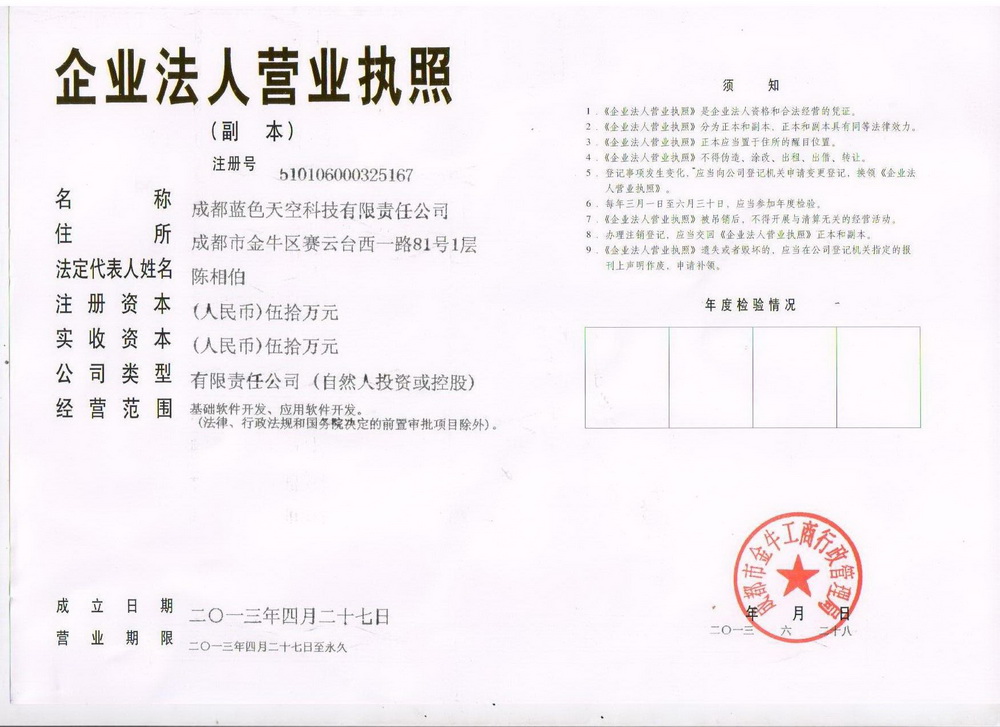 蓝色天空公司营业执照