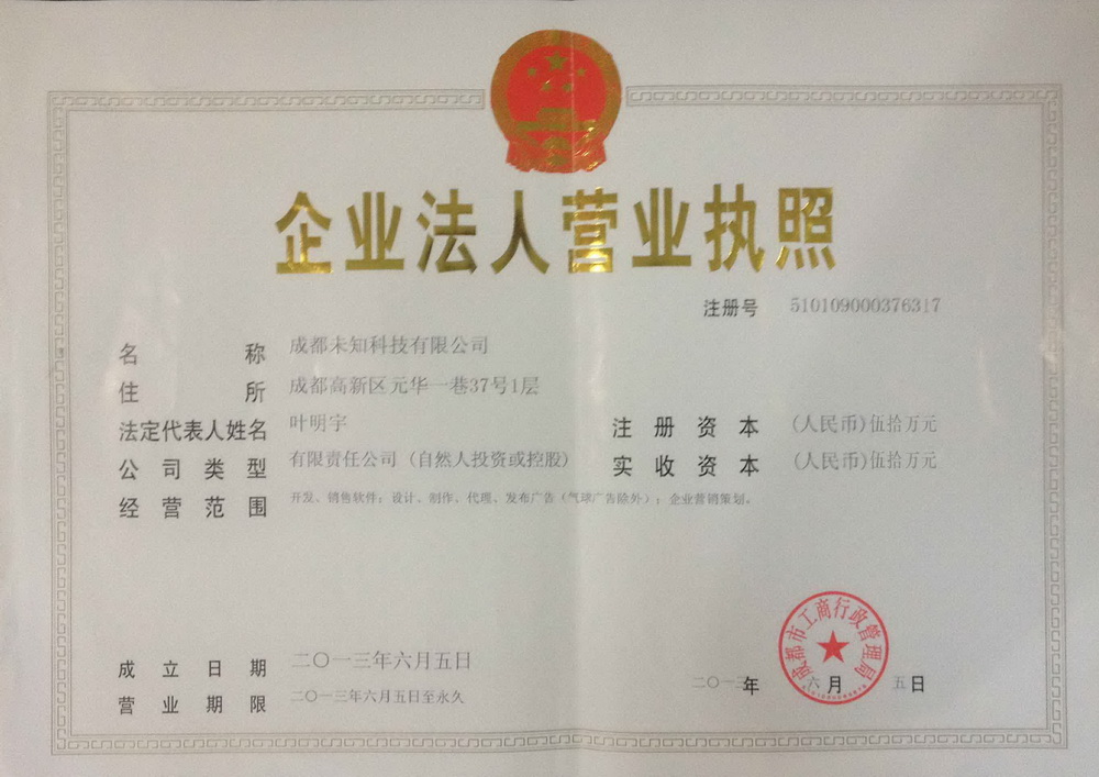 蓝色天空公司招牌 未知科技公司营业执照