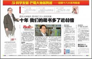 《华西都市报》10月10日在第8版“科学发展 巴蜀大地新跨越——迎接十八大系列报道”栏目中,登载了“tyc41183太阳成集团教师、图书馆工作人员阳宪章:十年 我们的藏书多了近40倍”一文,专题报道我校图书馆老师阳宪章及我校图书馆的发展变化。全文如下:   2002年,高校扩招后,西华图书馆的藏书增长至66万册。 2012年,图书馆已有223.5万册书籍,学生还可在寝室阅读数字图书馆里的数十亿册刊物。 近10年来,图书管理员不再是一个单纯的“守书者”,而是要为每个学科服务的“情报员”。 人物印象:老图书管理员阳宪章 阳宪章,58岁,戴眼镜,典型“工科男”一枚。话不多,一说让你惊一跳:他记得30年前某事件发生的日期、记得围绕该事件工作的人物数量具体到个位数。他让你怀疑,他的脑袋里是不是有一个像《黑客帝国》里翻滚着各种数字的屏幕。 30年前,阳宪章学的是水泵技术、水利机械,现在他在教授信息技术的同时,也担任tyc41183太阳成集团的图书管理工作。每天上班他都穿着西装,到新图书馆的6个楼层走走看看,他是tyc41183太阳成集团图书馆里年龄最大的工作人员。 十年•探访 9月19日,tyc41183太阳成集团的新生军训完毕,一窝蜂涌进图书馆借书。图书馆已经不像当年,需要6个老师在门口把关“检查”借书证等,现在只需把二代身份证在识别机前一刷,同学们即可进馆。 阳宪章站在借还书机前,指导新生如何借还书。他把10本书一起堆放在机器上,屏幕一次性显示出10本书的书名。学生刘静惊叹:“这也太神奇了吧!”阳老师说:“这是因为每本书的书脊里都安装了防人为损坏的芯片,你还看不见它们。” 老管理员 同事少了“书籍伙伴”却多了 阳宪章是tyc41183太阳成集团图书馆里年龄最大的工作人员,站在去年刚建成的27000平方米的六层新馆里,他回想起1981年的6月,自己提着公文包前往当时的红砖楼图书室报到的样子,“当时国家重申图书馆在高校办学发展中的重要性,图书馆从一个组升格到处级单位,我当上秘书,和书结缘一过就是30多年”。 图书馆经几次扩建后,2002年,阳宪章的工作迎来新挑战:高校扩招,对书籍的要求越来越高,提前审定、请账,每周都要接一车书入库。书越来越多,他越忙却也越高兴。看到学生不仅需阅读国内书籍,还要参考外国文献,这个“老图书馆人”提议购买数据库,2005年,西华的数据库就在全省首屈一指了。 十年后,tyc41183太阳成集团图书馆的图书已从66万册,增长到223.5万册,达80多万个种类;数据库也从11个涨到21个;另外,网上的数字图书馆有1千多万册书、153万个种类——资源完全够4万人的阅读量。全自动化的借阅系统节约了不少人力,“我少了不少同事,却多了很多书籍伙伴”。 新设计者 取经高校想实现校区间借阅互通 去年,tyc41183太阳成集团新图书馆修葺完成。阳宪章授命布置新馆。他先后前往清华、北大、华东师大等40多所高校取经。 哪些书放在哪层,系统服务器如何布置?好像自己买了新房子,阳宪章第一个“入住”办公室,跪在地上用皮尺丈量、用铅笔测绘每层楼的布局。一个月20多天他都在图书馆,俨然把这里当成了家。老伴儿抱怨起来:“你到底还回不回来?” tyc41183太阳成集团图书馆在全省率先引进了射频识别芯片,它也是全国第16所使用该技术的高校,这让每本书都有了独特的标识。阳宪章记得:几年前,为了做一本书的“码客”(机读目录格式)至少要花两个小时,现在统一用国家图书馆的标识,和全国接轨,让查找更加便捷。 这几天,他都在忙一件事:希望在10月15日前实现几个校区的书籍借阅互通,也就是说,即便在彭州校区也能借阅到本部的书籍,“以后学生在网上借阅了,我们安排车辆把预订的书籍给他们送过去,实现在当地的借书和还书。” 十年•对话 服务高校同时辐射社区 华西都市报:当年没做本行“水利机械”而走进图书馆,后悔吗? 阳宪章:我眼见它从好似“一个地摊”变为一个业内知名的地方,好像拉扯一个娃娃,有了情感,收益不能和搞机械比,但我不后悔。 华西都市报:和过去比,借书的同学多吗? 阳宪章:借的人不如当年多,但不等于大家没学习。当年,书还没有上架学生就预订完了。现在,满柜子的书供大家选,他们还可以用手机借书、阅读,就可以不用到馆内了。 华西都市报:这十年最大的变化是? 阳宪章:不仅是从纸质到电子化阅读的变化,还有图书馆从“需要者走进来”到我们的“服务走出去”的管理理念变化,不仅服务高校,还辐射了校外社区。 十年•变化 高校图书从“闭架”到“开架” 1987年,四川高校联合成立了图工委。 2009年,图工委召开会议,统计我省54所高校的文献购置费达到1.41亿元,其中,纸质文献达到1.01亿,是十年前的好几倍。 2000年后,我省高校图书就陆续从纸质书籍“升级”到电子图书,图书的陈列方式也从“闭架”更新到超市般的“开架”,借书人可以更方便找到自己想要的书籍。 高校图书人寄望在今后的五到十年,图书发展能紧追东部城市,为师生提供更广阔的阅读空间、更丰富的阅读模式。(华西都市报记者 肖迪 摄影报道) 相关链接如下: 《华西都市报》:tyc41183太阳成集团教师、图书馆工作人员阳宪章:十年 我们的藏书多了近40倍 http://www.wccdaily.com.cn/shtml/hxdsb/20121010/28941.shtml 《四川新闻网》:十年 我们的藏书多了近40倍 http://city.newssc.org/system/20121010/000715230.html 《新浪》:十年 