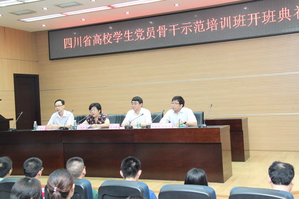 7月8日,省委教育工委副书记、省教育厅党组成员王晓都,省委教育工委、省教育厅组织干部处处长丁念友,省委教育工委、省教育厅组织干部处副处长蔡玉波等来校参加了四川省高校学生党员骨干示范培训班开班典礼。王晓都副书记作了讲话,对办好全省高校学生党员骨干示范培训班提出了要求。 开班典礼后,王晓都副书记来到新图书馆会议室,与来校参加我校党的群众路线教育实践活动动员大会的省委第20督导组组长、省政协委员傅志康一行5人以及我校在校全体校领导进行调研座谈,对我校开展好群众路线教育实践活动提出了要求。 王晓都副书记指出,一要高度重视,按照省委的要求,在省委第20督导组的指导下,把党的群众路线教育实践活动作为学校今后一段时期党员领导干部政治生活中的一件大事来抓;二要周密部署,精心组织实施,突出党员领导干部这一主体,把强化群众观点作为核心,把转变“四风”作为切入点,把解决问题作为落脚点;三要力求实效,通过开展党的群众路线教育实践活动,达到凝聚人心、促进学校又好又快发展的实效。