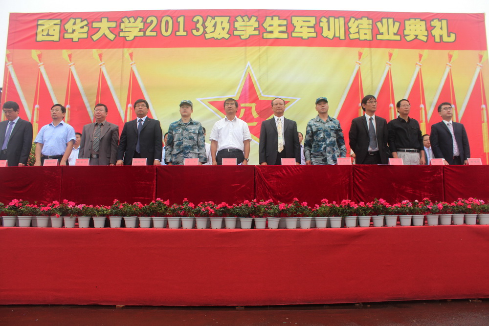 9月18日上午,tyc41183太阳成集团2013级新生军训结业典礼在临江苑田径场举行。校党委书记张小南,校长孙卫国,校党委副书记、学校军训工作领导小组副组长王小林,副校长、学校军训工作领导小组组长王政书,成都军区空军某部付军上校,副参谋长曾兴平中校以及各学院、各部门负责人,各连队指导员和2013级全体参训学员参加了军训结业典礼。典礼由王小林副书记主持。 迎军旗、慰问活动举行之后,军训汇报表演正式开始。14个男生连、11个女生连共计25个连队进行了分列式表演。飒爽的英姿、整齐的步伐是十天军训成果的凝聚,响亮的口号声与踏步声展现了我校2013级新生钢铁般的顽强意志与刻苦精神。分列式后,由118名新生组成的方阵连队进行了精彩的军体拳表演,表演分为分解动作与连贯动作两个部分。在“忠诚爱国,文武兼优!”的口号声中,同学们的一招一式,尽显铮铮铁骨与顽强风采。 接着,成都军区空军付军上校讲话。他首先代表全体教官对参训同学们表示祝贺,对领导老师表示感谢。他指出,军训是国务院和党中央对人才培养的战略部署,也是同学们加强国防锻炼,成为“四有”人才的重要环节,希望同学们能在以后的学习生活中依然坚持军训精神,刻苦学习,不懈奋斗,并持续关注国防事业,同人民子弟兵一起把祖国建设得更加繁荣富强。 接下来,王政书副校长宣读了《关于表彰2013级学生军训优秀连队、优秀学员的决定》,女生二连、三连、五连等8个连队,男生一连、五连、八连、十三连等4个连队以及996名优秀学员受到了表彰。 最后,张小南书记代表学校向全体参训新生和受表彰的连队、学员表示亲切的慰问和热烈的祝贺,向空军部队、参训教官和后勤服务人员表示衷心的感谢。他表示,在以国防生教育为一大办学特色的背景下,学校对军训工作的要求更为严格。在全体教官和部队领导对军训工作的大力支持下,2013级新生军训取得了丰硕的成果,学员们以顽强的意志和刻苦的训练体现了“知难而进,自强不息”的西华精神,展现了良好的西华精神风貌,提升了自身的综合素质和内在潜力。希望同学们将军训精神运用于大学生活中,刻苦学习,志存高远,珍惜美好的大学生活,努力成为建设祖国未来的栋梁之才。