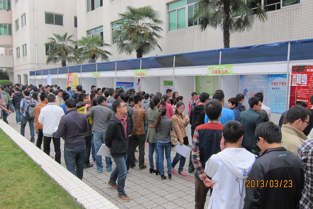 3月23日,新疆生产建设兵团组团人才中心主任闫志刚带领兵团16个师级单位来校举行2013届毕业生专场招聘会。本次招聘活动受到了省教育厅和学校的高度重视,校党委副书记王小林到招聘现场,了解相关情况,指导工作。 据闫志刚主任介绍,兵团党委出台了一系列引进人才的优惠政策,如到兵团基层一线工作的高校毕业生符合条件的可作为“连官”和“选派生”享受副连职待遇,纳入团场的后备干部管理;硕士研究生来兵团工作直接聘为中级职称。应聘到团以下单位工作的高校毕业生及其配偶或(对象)可以直接纳入团场干部和职工序列,安排相应工作,其直系亲属愿意到兵团团以下单位工作和养老的,可以优先照顾安排工作,可以优先承租周转房和廉租房;设立人才开发专项资金,将人才开发投入纳入兵团财务年度预算,每年用于人才开发投入的资金不低于二年度财务一般预算收入的5%;从2006年起,兵团机关录用公务员,对具有2年基层工作经历的高校毕业生的录用比例不少于二分之一,且逐年提高。闫志刚主任表示,兵团正以其前所未有的发展速度向前迈进,真诚欢迎同学们积极参与到兵团的发展中来,开拓创新、建功立业,兵团将创造一流环境,做好服务工作,全力为大家提供事业发展的空间,搭建事业成功的平台。 据悉,2013年兵团拿出4500多个就业岗位面向疆外应届高校毕业生开展招聘活动,其中研究生44人,本科生1993人,专科生2448人,专业需求设计到我校的有机械、电气信息、土木工程、管理、经贸、环境工程、市场营销、计算机及中文新闻类专业。根据招聘现场统计,此次招聘会现场签约62人,另有80余人达成就业意向。