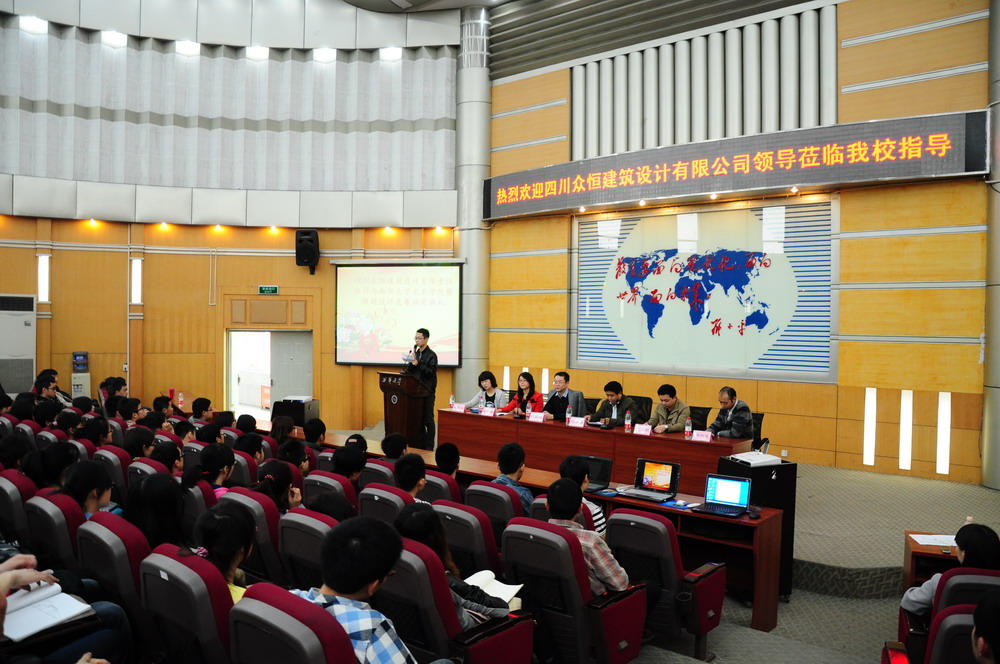 3月13日下午,建筑与土木工程学院在四教报告厅举行了交流大会暨“快题设计竞赛”颁奖典礼,四川众恒建筑设计有限责任公司负责人、建筑与土木工程学院院长刘保县、副院长江毅以及建筑学、城市规划专业的同学们参加了本次大会。 颁奖典礼在全体人员热烈的掌声中拉开序幕,刘院长首先对活动开展的背景进行了介绍。他说,在今年1月15日,四川众恒建筑设计有限责任公司与我校达成了校企合作的协议,并且提出了“4+1”的创新人才培养模式。开学初,公司在我校举办了“快题设计竞赛”并取得预期效果。为了激励更多西华学子参与到建筑设计的活动中,众恒公司决定出资四万元在我校设立众恒奖学金、奖教金,同时也为我校学子提供了更多的就业实习机会。众恒建筑设计有限责任公司与我校达成的校企合作协议把企业自身的竞争机制引入到教学中,对培养学生的质量意识、速度意识、竞争意识等起到较好的促进作用,有助于提升同学们学习的积极性。今后,我校将与众恒建筑设计有限公司开展多方位的合作,促进双方在更广领域和更深层次的交流,实现双方的互利共赢。 成都众恒公司人力资源主管陈丽萍女士表达了对“校企合作”的愿望,并宣读了本次竞赛的获奖名单。本次设计竞赛设置一等奖一名,二等奖两名,优秀奖若干,28名参赛选手和团队在本次竞赛中赛出了风格和水平。众恒首席总建筑师程毅强先生就本次竞赛中部分优秀学生作品进行了中肯简明的点评,并与同学们分享了他在从业过程中的经验。他提出,看似简单的设计,也要求设计者自身素质过硬;团队合作在建筑设计过程中十分重要;除了良好地完成专业课程,也要将结构设计的知识贯穿在整个建筑设计中。程毅强先生凭借自己丰富的从业经验和极高的设计素质,为大家带来了轻松幽默又不失专业素质的演讲,令在场的同学们获益匪浅。 最后,公司负责人和学院领导为获奖学生和团队颁奖并合影留念。 据悉, 四川众恒建筑设计有限责任公司成立于1996年,具备建筑工程设计甲级资质、风景园林工程设计专项乙级资质,是一家拥有数百名优秀设计人员的知名设计企业。其注重实践又极富有创新精神,倡导“以人为本”,以不断改善人类生活品质为己任,秉承“众志成城、持之以恒”的团队精神,致力于将国际理念与地域特色相结合,先进科技与节能环保相结合,建筑功能与建筑艺术相结合,创造出经济、高效、宜人、可持续发展的个性化作品。
