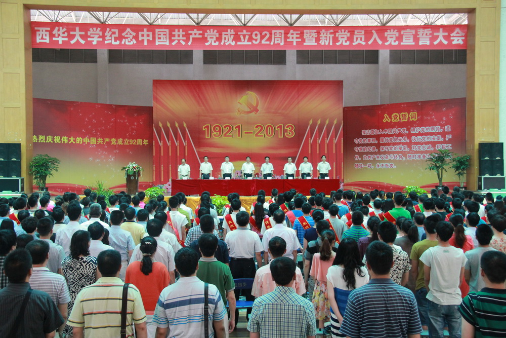 6月25日下午,学校在体育馆隆重召开庆祝中国共产党成立92周年大会,表彰先进基层党组织和优秀党员,举行新党员入党宣誓仪式,喜迎党的生日。学校党委常委、校党委书记张小南,党委常委、副校长李劲松,党委常委、校党委副书记王小林,党委常委、副校长何建平,党委常委、副校长胡丹,党委常委、副校长王政书,党委常委、校长办公室主任费凌,正厅级调研员钱进出席会议并在主席台就坐。张小南书记作了讲话,李劲松副校长主持会议,王小林副书记宣读了表彰决定。 张书记首先代表学校党委向全校共产党员致以节日问候,向受表彰的先进集体、先进个人和新党员表示热烈祝贺。张书记指出,近年来,在学校党委的领导下,学校以科学发展观为指引,锐意进取、真抓实干,谱写了学校内涵式发展的新篇章。特别是今年开展“实现伟大中国梦、建设美丽繁荣和谐四川”主题教育活动以来,全校上下思想进一步统一,力量进一步凝聚,作风进一步转变,工作进一步推动,全体师生面对未来更加充满信心。同时,张书记代表学校党委对全体党员干部和广大共产党员提出了三点要求:一是以党的十八大精神为指引,立足学校实际,进一步提高学校办学质量;二是坚持与时俱进,扎实推进学校党建工作的科学化水平;三是坚持群众路线,切实改进作风,广泛凝聚民心民智。当前,学校正处于改革攻坚的关键时期,全校党员干部和全体党员务必牢固树立责任意识和忧患意识,率先垂范,奋勇争先,以自身的模范行动激发全校上下迎难而上、加快发展的动力,进一步增强宗旨意识、切实改进作风、严格廉洁自律,保持共产党人良好形象,最广泛地凝聚智慧和力量,最充分地调动各方面的积极性、主动性和创造性,形成共谋发展的强大合力。 会上,校党委副书记王小林宣读了四川省委教育工委的表彰名单和学校党委关于表彰2013年先进基层党组织和学生优秀个人的决定。在主席台就坐的校党委常委共同为此次受到表彰的先进学生党支部代表、优秀学生党支部书记代表、优秀学生共产党员和优秀学生组织员代表颁了奖。 四川省委教育工委表彰的教工代表、政治学院王贝老师,优秀党员代表、人文学院2010级汉语言文学专业的孙丽雪同学,新党员代表、交通与汽车工程学院2011级汽车服务工程专业的邓嘉伟同学分别在会上作了交流发言。他们代表受到表彰的优秀共产党员庄严承诺:作为教师党员,要将伟大的“中国梦”内化为本职工作的具体行动,将党的最新理论成果融进课堂教学,立足本职,做好本职,在工作中勇挑重担,带头建功立业,在工作岗位上继续发挥先锋模范作用;作为学生党员,必须时刻牢记自己的使命和责任,以自己的行动引导身边的人,时刻充满信心,满怀豪情,以饱满的精神面貌去面对学习、生活和工作中的种种挑战,切实履行党员义务,充分发挥党员的先锋模范作用。 “我志愿加入中国共产党,拥护党的纲领,遵守党的章程,履行党员义务,执行党的决定,严守党的纪律,保守党的秘密,对党忠诚,积极工作,为共产主义奋斗终身,随时准备为党和人民牺牲一切,永不叛党。”纪念表彰大会后,学校举行了新党员入党宣誓仪式。在校党委组织部部长唐润华的引领下,新党员们面对党旗,举起右手,庄严宣誓。 学校副处及以上中层领导干部,离退休党员代表,受表彰学生基层党组织和学生优秀个人代表,全体党支部书记,新党员代表以及学生党员代表参加大会。