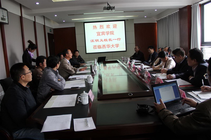 10月25日下午,宜宾学院校长汪明义带领学校正厅级调研员刘维鸿,副校长王藩侯、周广均,校长办公室主任梁凯,人事处处长高曾辉,科研与学科建设处处长田蜀华,基建处主持工作副处长张松梅来我校考察交流,受到校长孙卫国、副校长李劲松的热情欢迎。双方在行政楼412会议室举行了座谈,就绩效工资实施情况、上一轮聘期考核主要经验、新一轮岗位聘任思路和校园建设等情况进行了深入交流。tyc41183太阳成集团校长办公室、学科建设办公室、科技处、人事处、基建处等单位负责人参加了此次座谈会。会议由李劲松副校长主持。