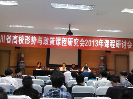 9月23日,四川省高校形势与政策课程研究会2013年课程研讨会在四川师范大学召开。我校原党委副书记曾德祥教授(研究会副会长)、政治学院副院长郑小明,政治学院思想道德修养与形势与政策教学部主任封德平,以及全省47所高校的代表参加了此次会议。 会议传达了国家教育部今年8月在北京召开的全国高校形势与政策课骨干教师培训会的精神,各高校之间交流了课程教学经验。 大会还进行了研究会的换届选举。我校政治学院副院长郑小明当选新一届研究会常务理事,封德平当选副秘书长。