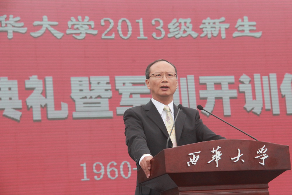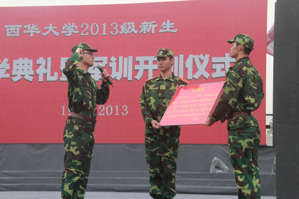 9月9日上午,我校2013级新生开学典礼暨军训开训仪式分别在校本部、彭州校区举行。 上午8:30,我校2013级本科及研究生新生开学典礼暨军训开训仪式在校本部临江苑田径场举行。全体校领导、中国人民解放军95607部队政治部主任姜根荣上校、空军驻tyc41183太阳成集团选培办主任叶飞大校出席典礼。副校长何建平主持典礼。 在庄严的升国旗仪式中,典礼正式开始。校长孙卫国代表学校党委、行政以及全校师生向2013级新同学们表示热烈的欢迎和衷心的祝贺,向承训解放军全体官兵表示崇高的敬意。孙校长指出,为了将同学们培养成具有高尚的人格素养、强烈的责任意识、扎实的专业知识和改革奋进精神的各专业优秀人才,不仅学校全体教师要付出辛勤劳动,呕心沥血,作为学习主体的同学们更要学会学习,养成良好的学习习惯。为此,学校对全体新同学提出三点期望:第一,培养责任,学会做人;第二,锻炼能力,学会做事,从小事做起,增长才干,锻炼做大事的能力;第三,好奇求知,学会学习。孙校长引用著名学者陆九渊的“为学患无疑,疑则有进”这句名言,希望同学们在老师的引导和帮助下,以好奇的心态,怀疑的态度,求知的、追求真理的精神去学习,培养自己发现问题、解决问题的能力。同时,孙校长希望同学们通过军训,学习军队的优良品质,并发扬这些优良作风,刻苦学习,肩负起续写西华荣耀和民族复兴的神圣使命。 中国人民解放军95607部队政治部主任姜根荣上校指出,军训既是同学们磨砺意志、提高修养、增强体质的机会,也是同学们学习军队优良传统、培养艰苦奋斗精神的机会。教官们要认真负责、爱护学生,循序渐进、因人施教,扎实开展训练;参训学员们要服从命令,听从指挥,严格要求,刻苦训练,以坚韧不拔的顽强意志,高标准、高质量的完成军训任务。 材料科学与工程学院魏晓伟教授代表全校师生向新同学致辞。他说:“天行健,君子以自强不息;地势坤,君子以厚德载物。希望同学们继承‘艰苦奋斗,自强不息’的西华精神,积极自信,认准目标,付诸行动,努力成为一名德、智、体、美等全面发展的优秀学子。”并表示,作为一名老师,愿倾尽所有,全力以赴,帮助同学们成长、成才。 校学生会主席王扬丹代表全校同学向2013级新同学致辞。他首先代表全校学生向学校领导、教师致以节日的祝福。他建议新同学珍惜在校生活、珍惜学习时间,锻炼能力,提升自我,在tyc41183太阳成集团这片沃土上扬帆起航。 来自政治学院2013级思想政治教育专业的孙诗琪同学代表本科新生发言,表达了对大学生活的憧憬及对学校的美好祝愿。来自人文学院2013级马克思主义与中国文化研究专业的温超同学代表研究生新生发言,他以“求是、明德、卓越”的校训与新同学共勉。参训学生代表生物工程学院2013级唐佳伟、李杨洋、林宜锦带领全体参训学员宣读了军训誓词,表示将以军人的标准严格要求自己,刻苦训练,服从命令,圆满完成军训任务。 典礼结束后,全体参训学员立即投入到了紧张的军训生活之中。  典礼现场