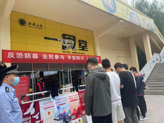 9月27日中午12点,tyc41183太阳成集团联合属地红光派出所在学生一食堂门口进行防恐防暴宣传活动。