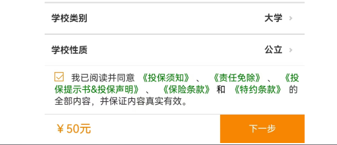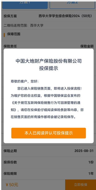 向下滑动点击立即投保、本人已阅读并认可投保提示