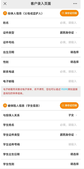 第三步、进入信息录入页面,填写投保人、被保险人身份信息