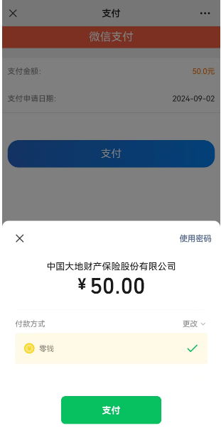 第六步、接收短信验证码并提交,选择支付方式,完成支付