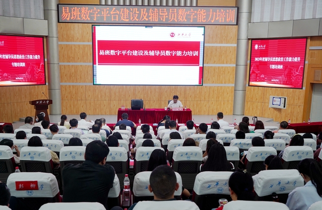 张力作了总结讲话。他指出,全体学工队伍要坚持围绕立德树人根本任务,以学生成人成才为中心,坚持用科学的世界观方法论指导工作,坚持问题导向,加强工作调研,培养数字思维能力。一要修改完善西华易班的制度机制,立足校本化,进行差异化发展;二要加强数据管理,将数据结构化,形成“数治”,变成学校管理服务的刚性要求,长效化加强辅导员数字能力提升;三要在实践基础上开展相关理论研究,有组织地进行系统理论研究,不断推进数字化建设,力求用严密的数字化逻辑思维指导日常工作。