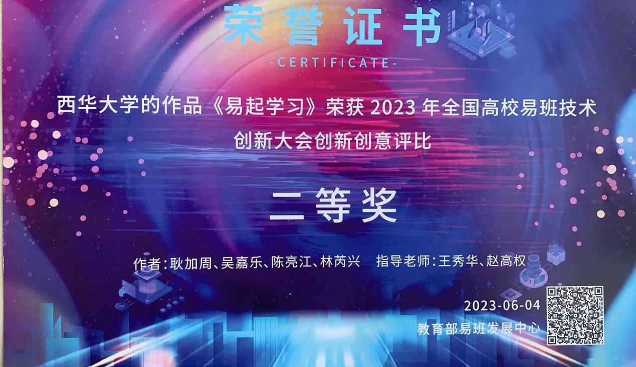 6月1日至4日,2023年全国高校易班技术创新大会在深圳举办,全国70余所易班共建高校齐聚一堂,共同交流展示易班技术创新应用成果,分享运营建设宝贵经验。由我校报送的“易起学习”项目经过专家评审、现场答辩,最终荣获 2023 年全国高校易班技术创新大会创新创意类二等奖。6月4日上午,项目成员林芮兴同学参加颁奖仪式并在大会中作项目展示及经验分享。