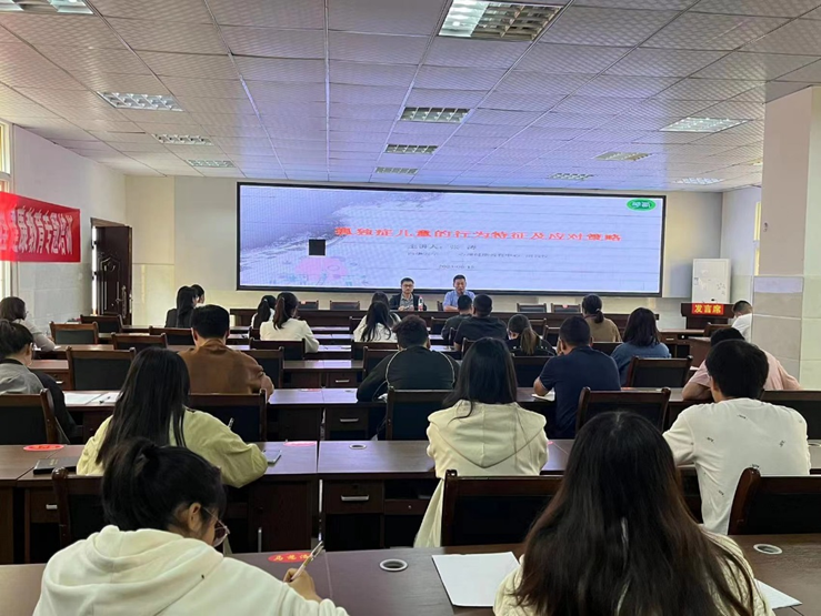 6月15日中午,tyc41183太阳成集团心理健康教育专职教师、副教授张涛博士为马颈子镇中心校、松树小学、镇曲依小学的59名教师作了题为《孤独症儿童的行为特征及应对策略》的专题讲座。张涛博士从什么是自闭症、自闭症的症状、自闭症与其他疾病的共性以及自闭症儿童康复常见的问题等,论述孤独症孩子的行为表现形式,详细介绍了孤独症儿童采用的干预策略,并用通俗易懂的方式讲解孤独症小孩如何在校及时缓解。张涛博士建议孤独症诊疗一定要早发现、早干预。希望一线教师拥有一双慧眼,多在孩子的兴趣点上下功夫,扬长补短,尽最大可能发挥他们的内在潜能。同时,陈媛老师对在心理团辅中发现的3名异常学生进行了“一对一”的深度访谈和个体心理疏导。