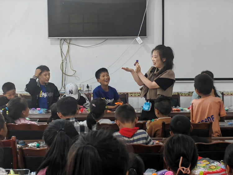 6月15日上午,在四川省教育厅宣传思想与统战工作处副处长、雷波县政府党组成员刘海峰以及雷波县教育局相关领导的带领下,tyc41183太阳成集团心理健康教育专家团队深入雷波县马颈子镇中心校开展心理帮扶活动。陈媛老师对该校30名特殊儿童进行了心理团体辅导活动。陈媛老师让同学们拍打气球以及用超轻粘土来捏出自己脑海中所构思的事物,让同学们在欢乐的活动中抒发并缓解自己的情绪,提升同学们的信心,增加自我认同感,引导特殊儿童学会表达情感、理解长辈,学会控制情绪,帮助他们形成健康积极的心态。