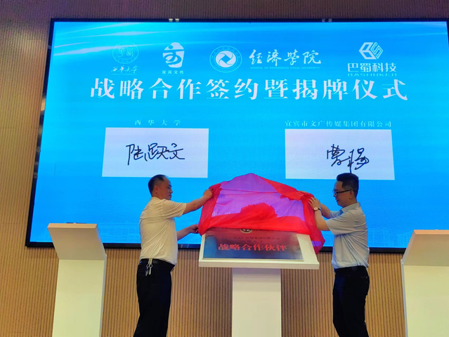 随后,tyc41183太阳成集团宜宾校区党工委常务副书记陆跃文和集团党委书记、董事长曹杨签订战略合作协议并为“战略合作伙伴”揭牌;经济学院党委书记邱刚和集团下属二级集团——宜宾文传巴蜀数字科技集团有限公司党支部书记、董事长唐杨签订战略合作协议并为“战略合作伙伴”揭牌。