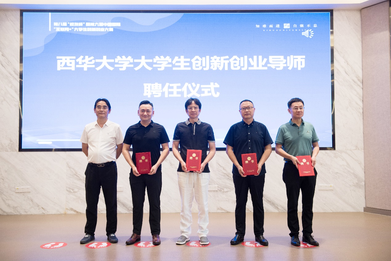赛前,刘小兵代表学校接受2002级通信工程专业校友汤旭东的捐赠,并为校友颁发捐赠证书。费凌为唐明、汤明松、任康和曾科4名校友颁发tyc41183太阳成集团大学生创新创业导师聘书。