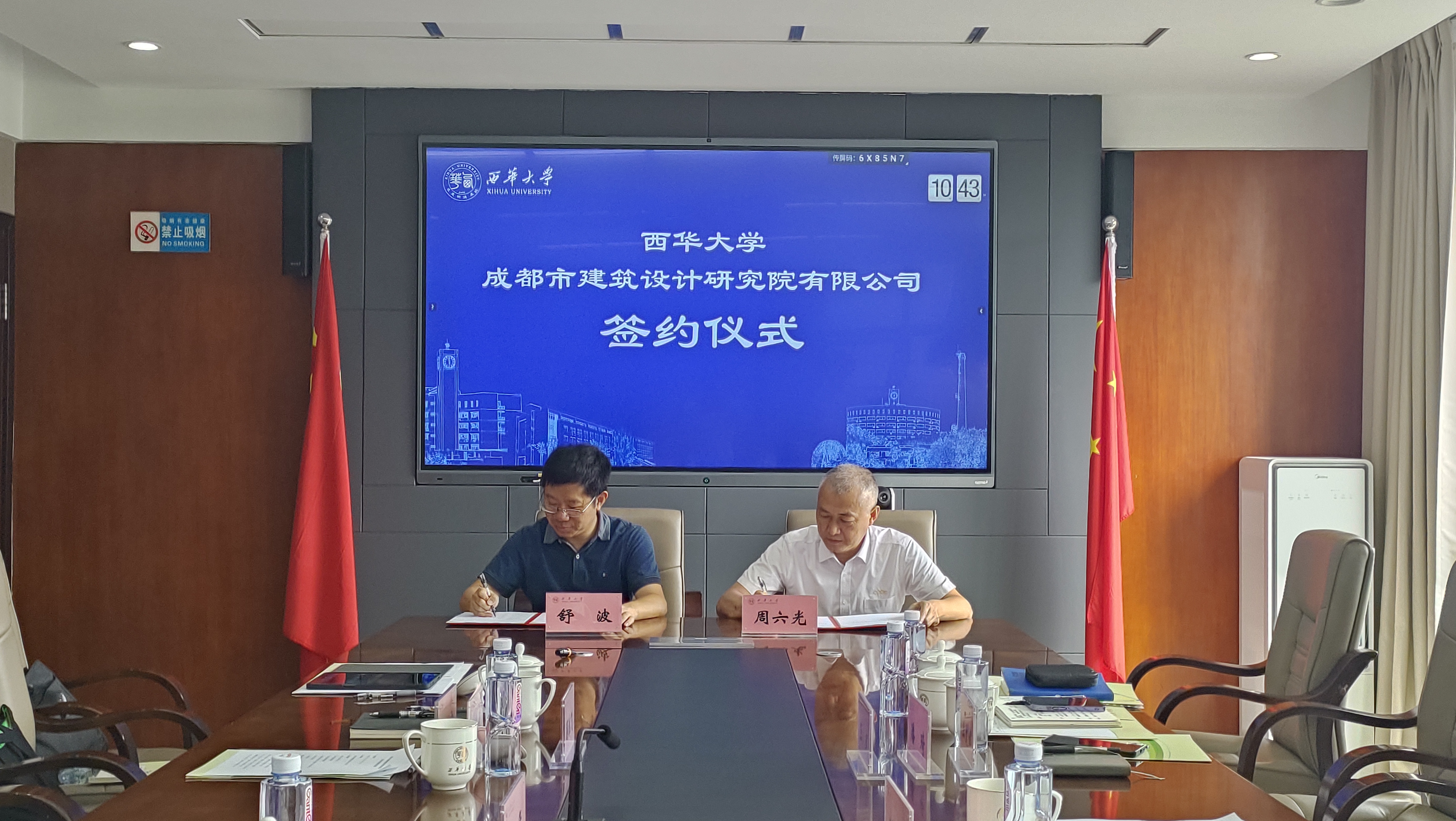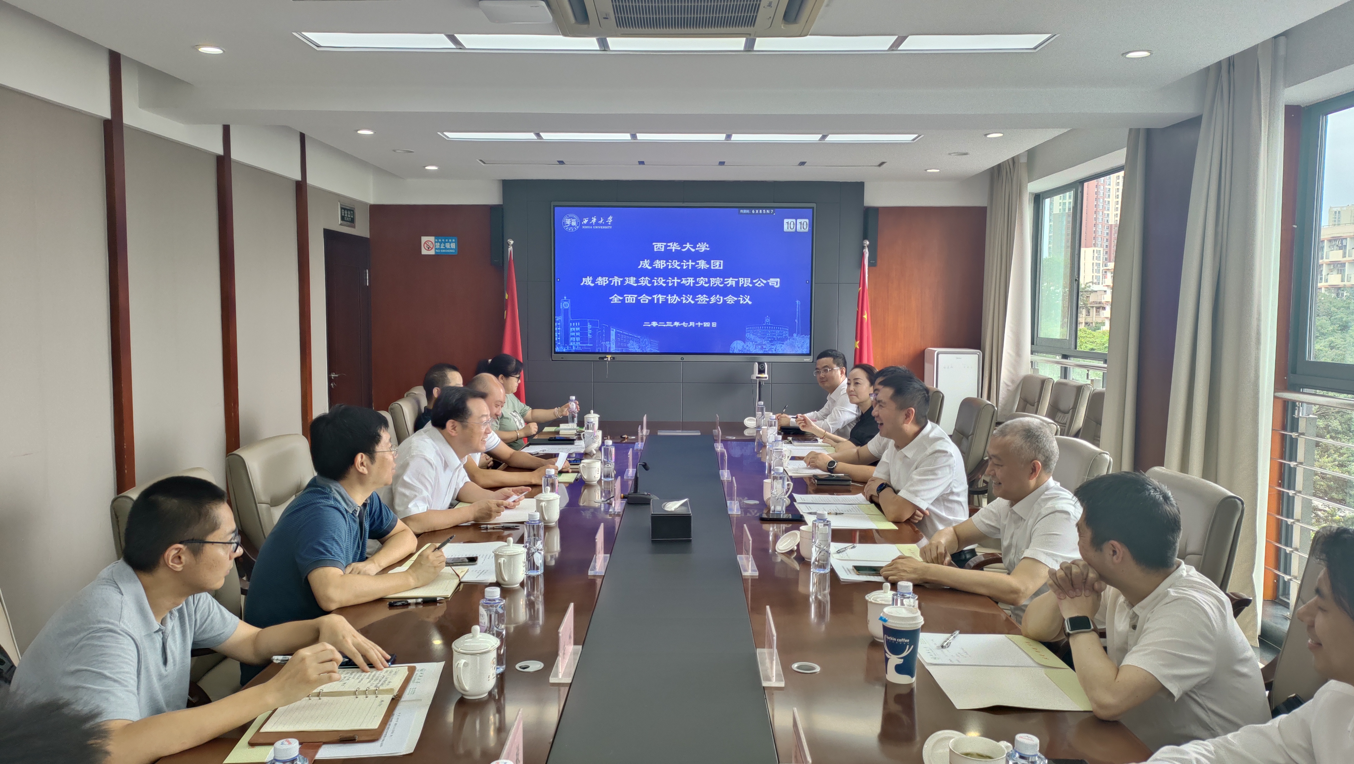 7月14日,tyc41183太阳成集团与成都市建筑设计研究院有限公司(以下简称“市建筑院”)全面合作协议在办公楼412会议室举行。成都设计咨询集团总经济师刘兆兵,成都市建筑设计研究院党委副书记周六光、副总经理王武、执行副总建筑师陈迎九、市场经营部部长潘琦、方案创作中心/TOD设计中心副主任蒋飞、市场经营部市场主管王文辉;副校长郎方年,建筑与土木工程学院党委书记顾鸿飞,院长舒波,副院长向天宇及学院部分教师参加签约仪式。