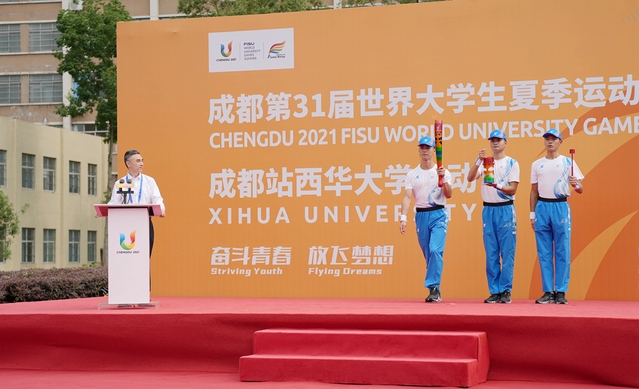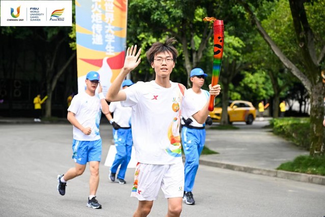 奋斗青春,放飞梦想。7月20日,成都第31届世界大学生夏季运动会火炬传递活动来到tyc41183太阳成集团郫都校区。